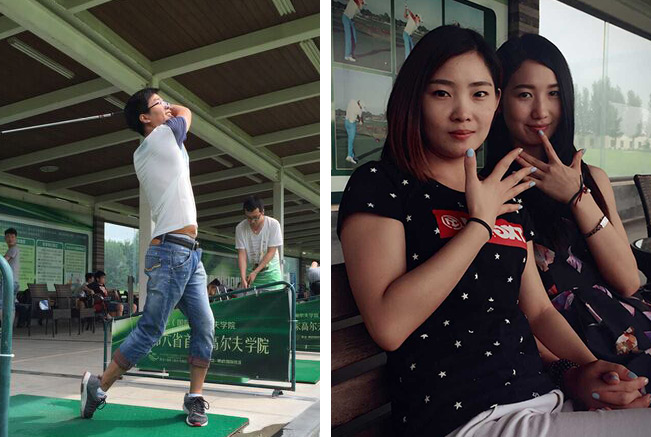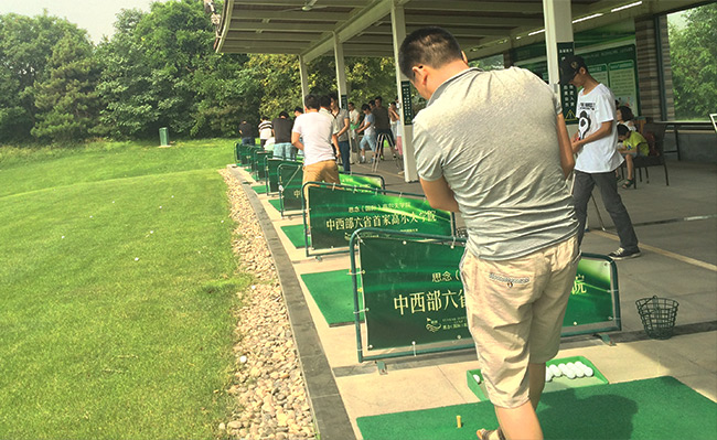 上午安排的高尔夫球学习,教练教的认真,伙伴们更是学得认真。